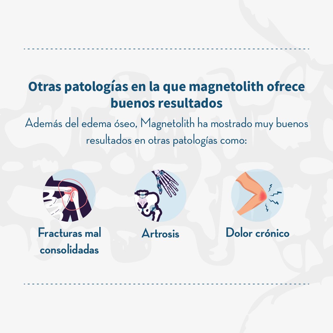 La magnetoterapia de alta intensidad y la de alta frecuencia producen diferentes efectos terapéuticos, como el antiinflamatorio, lo que disminuye la presión interna del hueso y alivia el dolor de manera significativa. A nivel celular, estos campos magnéticos también son capaces de estimular los osteoblastos, las células responsables de la formación del tejido óseo. Por último, aunque no por ello menos importante, también aumenta la vascularización.