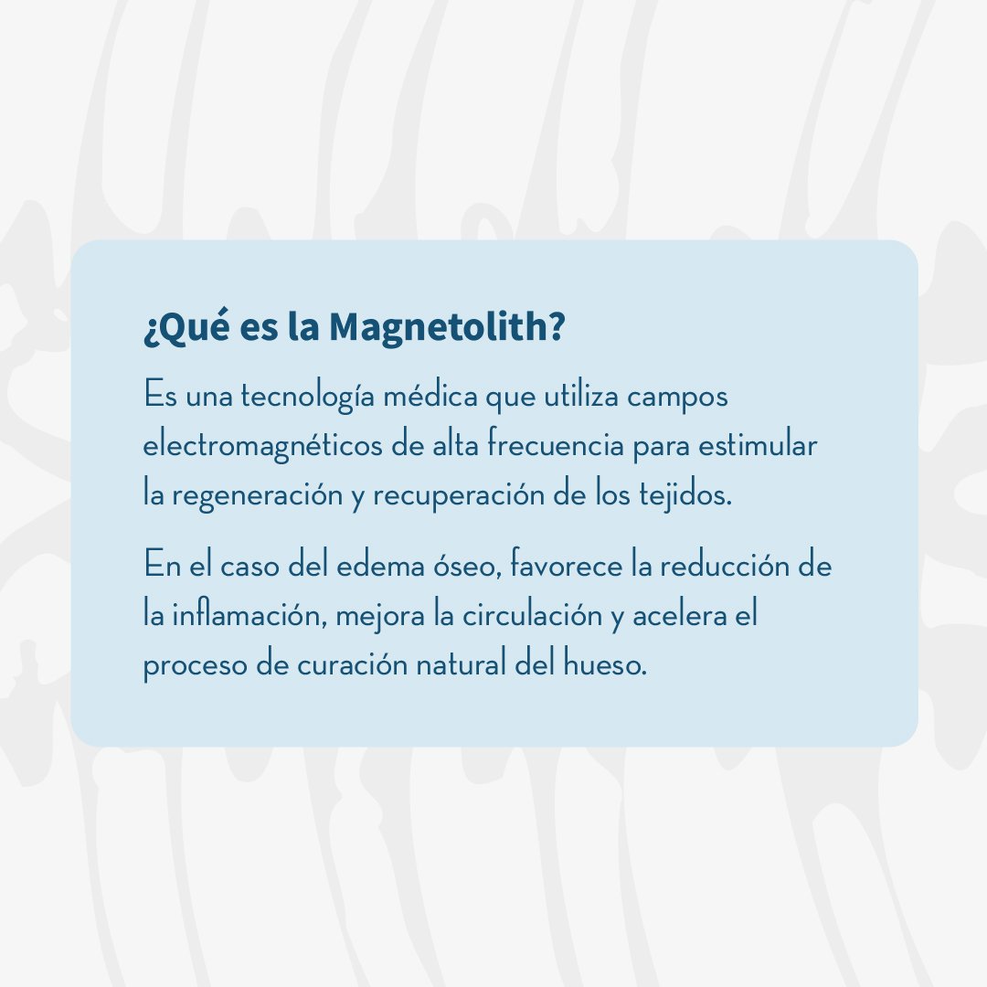 Ambas son terapias eficaces y ampliamente utilizadas para el tratamiento del edema óseo ya que actúan directamente sobre el hueso y los tejidos circundantes para acelerar el proceso de curación. Su tecnología consiste en la aplicación de campos magnéticos pulsados sobre la zona afectada. Dichos campos tienen la capacidad de penetrar los tejidos profundos hasta llegar al interior del hueso.